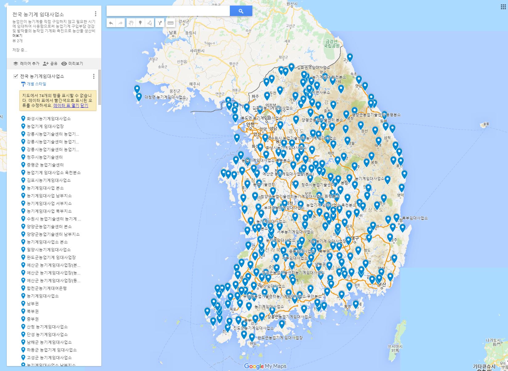 전국 농기계 임대사업소 - Google 내 지도